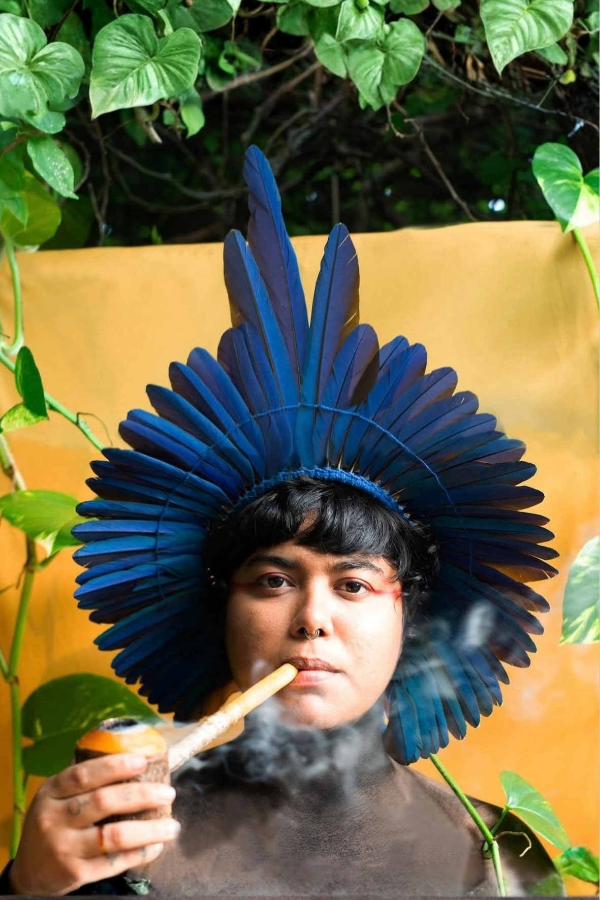 Cantora e compositora paraibana do povo Potiguara, Clara Potiguara é uma das protagonistas da juventude indígena em articulação no Nordeste. Sua voz transita entre a canção popular e a ancestralidade, integrando seu trabalho à cultura comunitária, ao ativismo territorial e às causas ambientais e LGBTQIAPN+. Em “Guyraetê”, sua expressão vocal potente ecoa as matriarcas e os cantos da terra e transforma o canto em tupi em um manifesto sobre a liberdade, a resiliência e o retorno à terra ancestral.